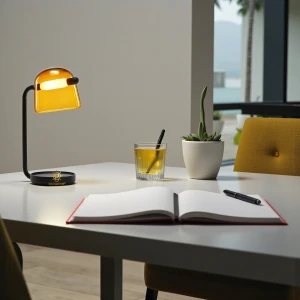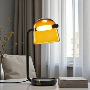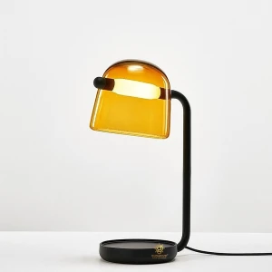 Amber Glass Shade Black Base Desk Lamp Table Lamp - Tricolour