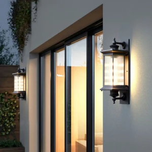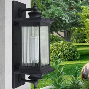 Decorative Outdoor Clear Glass Die Cast Aluminium Black Post Wall Lamp - Warm White
