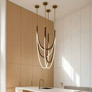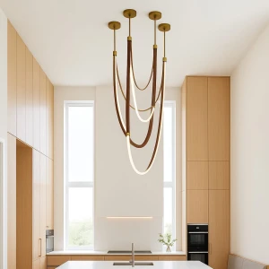 One Brown Linear Leather Belt Hanging Pendant Light - Tricolour