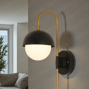 Frosted Glass Ball Black Wall Lamp - Warm White