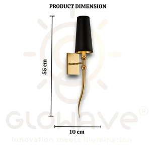 Antique Gold Finish Body Black Fabric Lampshade Wall Lamp - Warm White