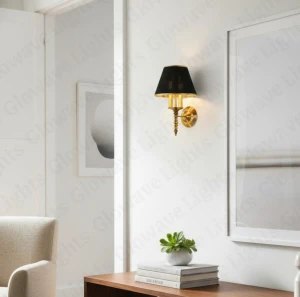 Antique Gold Finish Body Black Fabric Lampshade Vintage Wall Lamp - Warm White