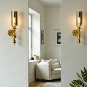 Creative Down Smoky Glass Golden Finish Light Champagne Wall Lamp - Warm White