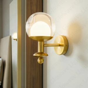Clear Glass Ball Golden Body LED Wall Lamp - Tricolour