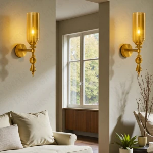 Creative Down Amber Glass Golden Finish Light Champagne Wall Lamp - Warm White