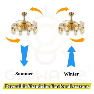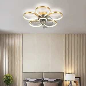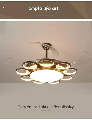9 Rings Light Chandelier Fan 52 Inch Gold Retractable Blades - Tricolour