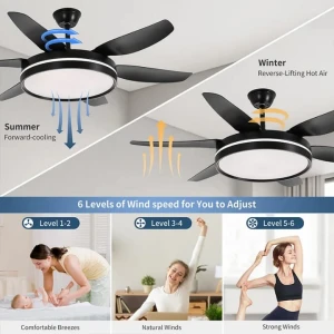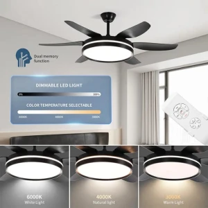 ABS Blades 52 Inch BLDC Ceiling Fan Black Body LED Tricolour Light