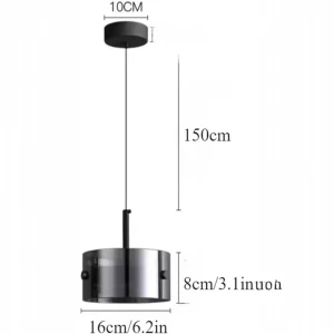Stylish LED Black Finish Metal Smoke Glass Hanging Light - Tricolour Light