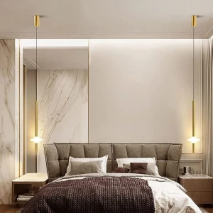 Golden Long Cylindrical Pendant Hanging Light