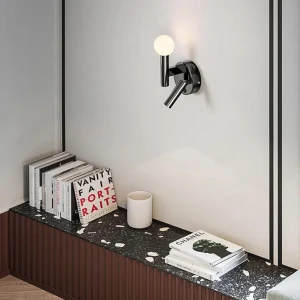 Black LED Wall Lamp with Adjustable Spot Light - Tricolour