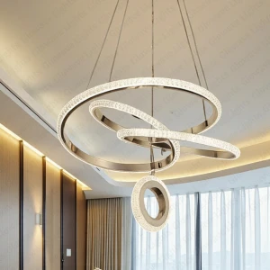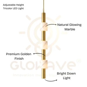 Linear LED Pendant Light with Golden Finish Hanging Chandelier Light - Tricolour