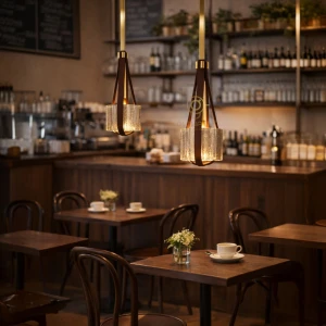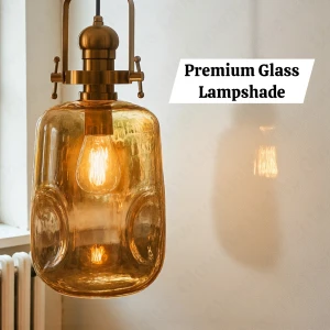 Vintage Metal Gold Brass Finish Amber Glass Pendant Hanging Lamp - Warm White