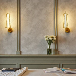 Antique Gold Finish Body Fabric Lampshade Vintage Wall Lamp - Warm White