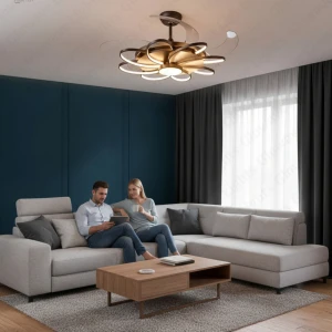 3 ABS Blade Fan with Light Black Body Flower Shape Ceiling Fan - Tricolour