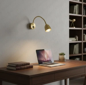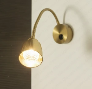 Golden Wall Spot Light Rocker Arm Adjustable Head with Switch - Tricolour