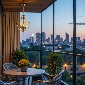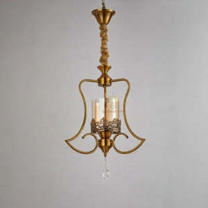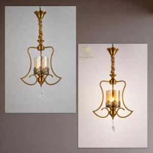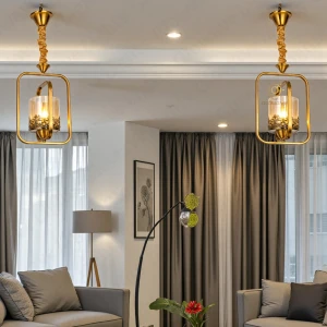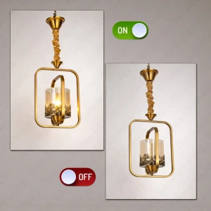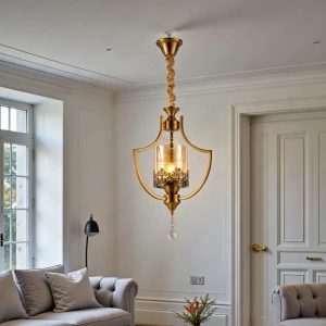 Stylish LED Gold Finish Metal Amber Glass Crystal Hanging Light - Tricolour Light