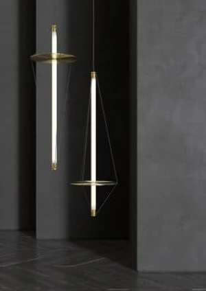Golden Cylindrical Pendant with Acrylic Disc Hanging Light