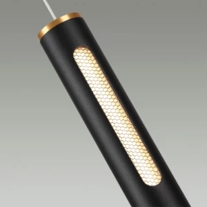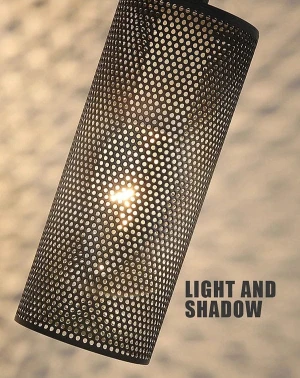 Cylindrical Pendant Light with Honeycomb Glow Matte Black Hanging Ceiling Lamp