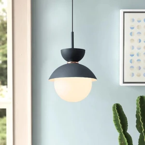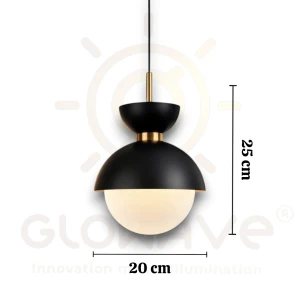 Dome Pendant Light with Opal Globe Matte Black & Gold Hanging Ceiling Lamp - Tricolor