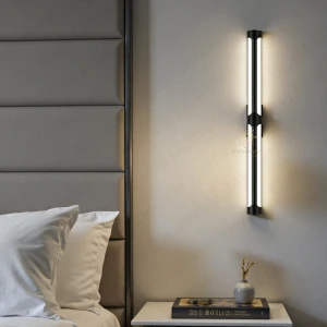 Black 700mm Metal LED Long Tube Wall Light with Adjustable Height - Tricolour