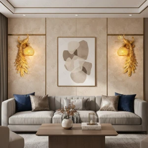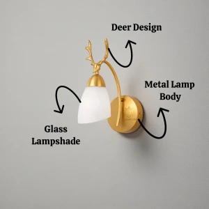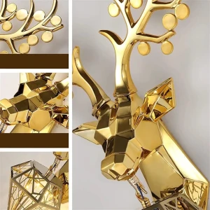 Royal 3D Deer Head Golden Statue Style Decoration Dual Purpose Wall Lamp - Warm White
