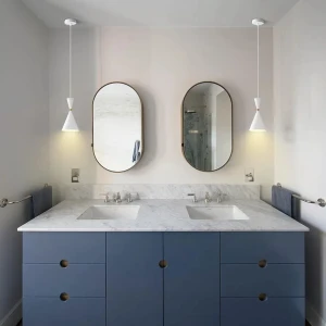 Dome Pendant Light with Opal Globe Blue & Gold Hanging Ceiling Lamp - Warm White