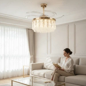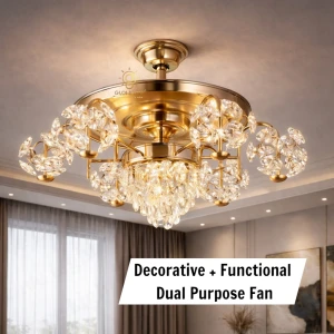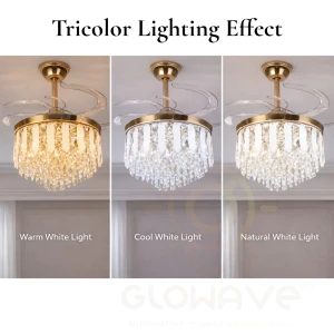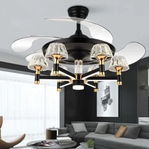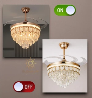 Luxury Crystal Retractable Ceiling Fan with LED Chandelier Light- Tricolor (FI 7641)