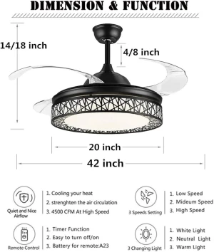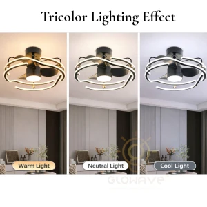 Black Finish Silent Operation Decorative LED Ceiling Fan - Tricolour