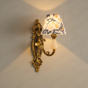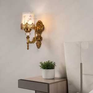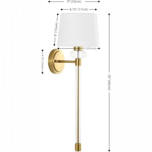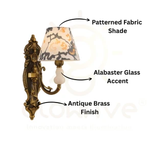 Gold Wall Sconce with Printed Glass Shade & Crystal Accent Wall Lamp - Warm White
