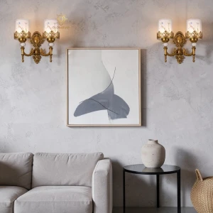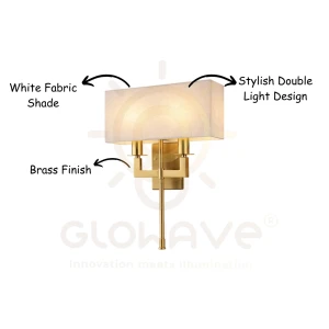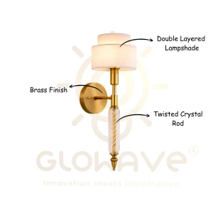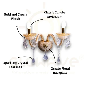 Gold Double Wall Light with Decorative Glass Shade & Crystal Accent Wall Lamp - Warm White