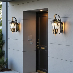 Outdoor Wall Lantern Light Black & Bronze Gold Finish Wall Sconce - Warm White