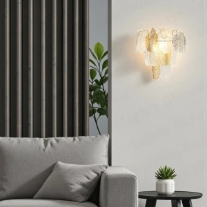 Crystal Gold Finish Clear Glass Crystal Light Wall Lamp - Warm White