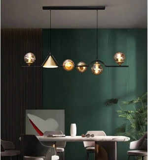 Linear Pendant Chandelier with Mixed Glass Shades Amber Glass Hanging Light - Warm White