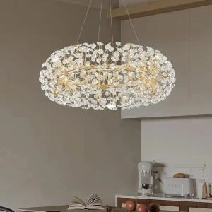 Designer Gold Finish Round Luxury Crystal LED Chandelier - Warm White