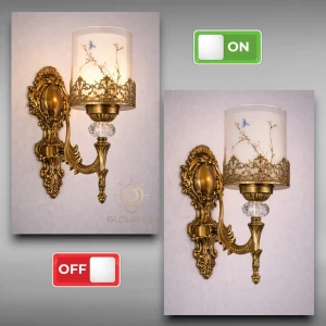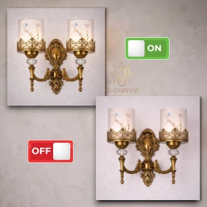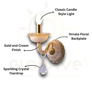 Antique Gold Finish Crystal Wall Light with Golden Frame Lighting Sconce - Warm White
