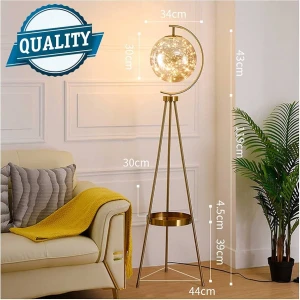 Luxury Crystal Globe Floor Lamp Brushed Gold Tripod Stand with Clear Glass Sphere Standing Lamp