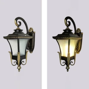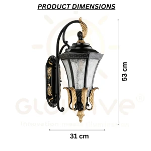 Vintage Black & Gold Finish Decorative Exterior Wall Sconce - Warm White