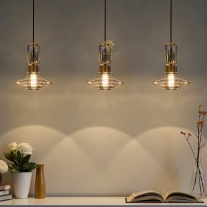 Glass Pendant Hanging Light with Gold Finish - Warm White