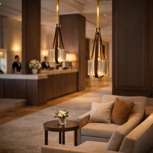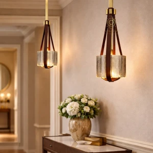 Brown Leather Belt Glass Pendant Hanging Light LED Suspension Lamp - Trichromatic