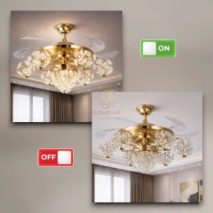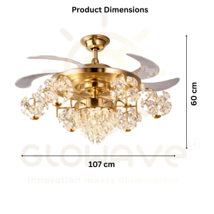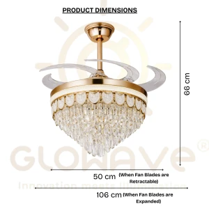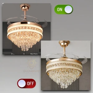Luxury Gold Crystal Retractable Ceiling Fan with LED Chandelier Light - Tricolor