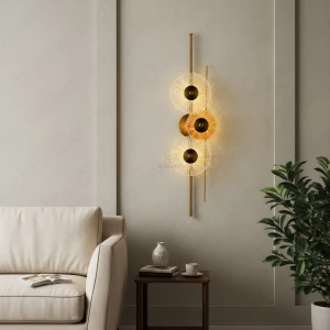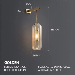 Creative Down Amber Glass Golden Wall Lamp - Warm White