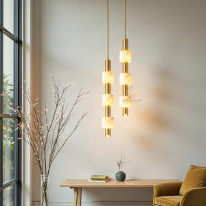 Ceiling Lamp with Natural Glowing Marble Cylinders & Bright Downlight - Warm White
