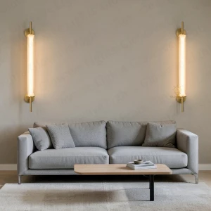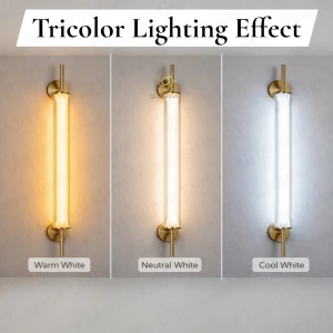 600mm LED Golden Round Base Long Tube Wall Lamp - Tricolour