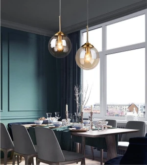 Smoke Glass Globe Pendant Light with Gold Finish Holder Hanging Light - Warm White