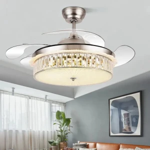 42 Inch Chrome Finish Fan with Crystal Chandelier Light 8 Retractable ABS Fan Blades (FI-7716)