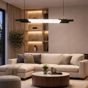 Linear LED Pendant Light with Black Finish Hanging Chandelier Light - Tricolour