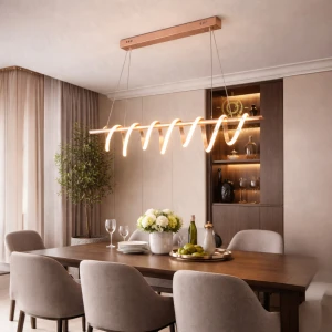 Linear LED Pendant Light with Golden Finish Hanging Chandelier Light - Tricolour