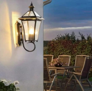 Outdoor Vintage Copper Finish Glass Shade Waterproof Wall Lamp - Warm White