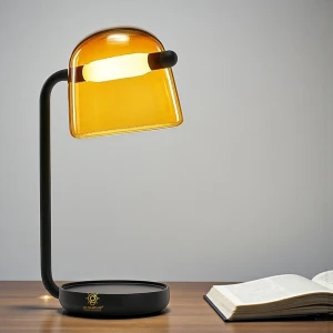 Amber Glass Shade Black Base Desk Lamp Table Lamp - Tricolour