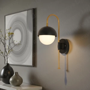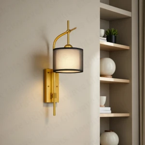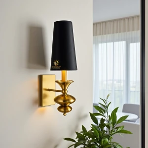 Antique Gold Finish Body Black Fabric Lampshade Wall Lamp - Warm White